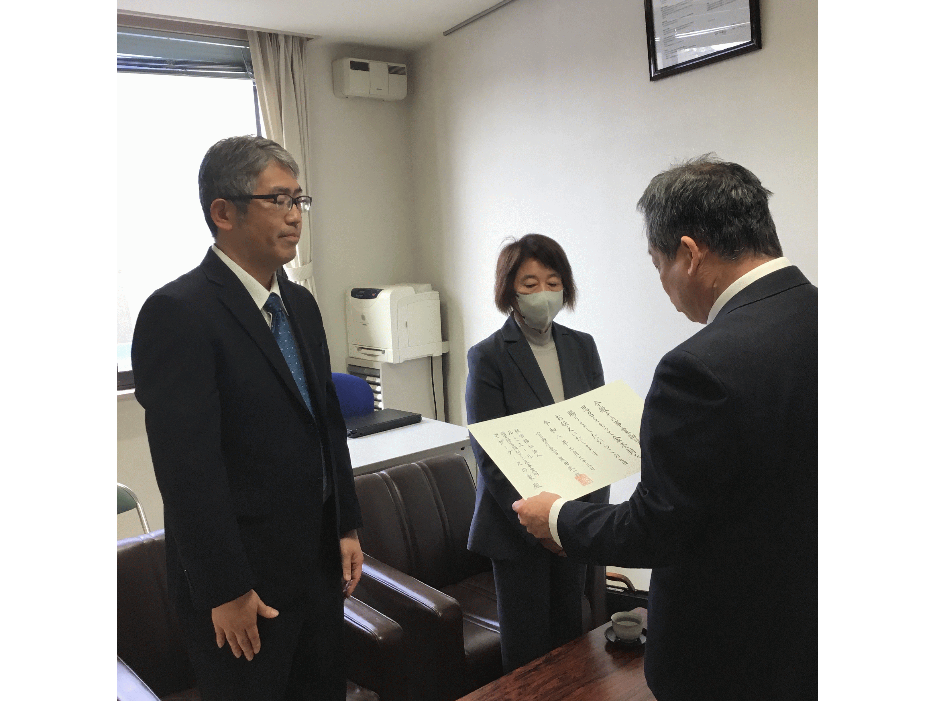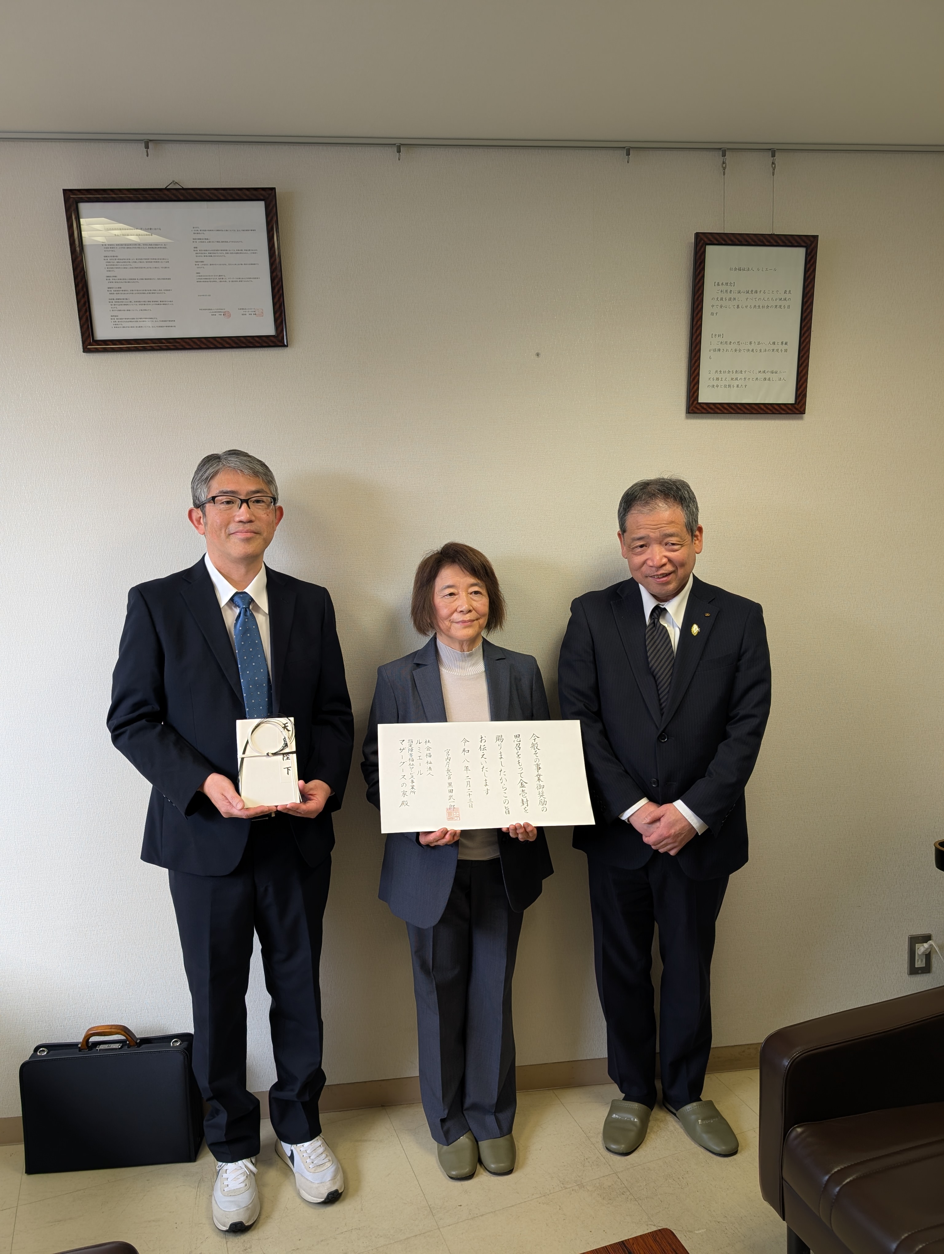 令和8年2月24日、マザーグースの家にて伝達式が行われ、徳島県 福壽保健福祉部長から当法人藤岡理事長に伝達されました。